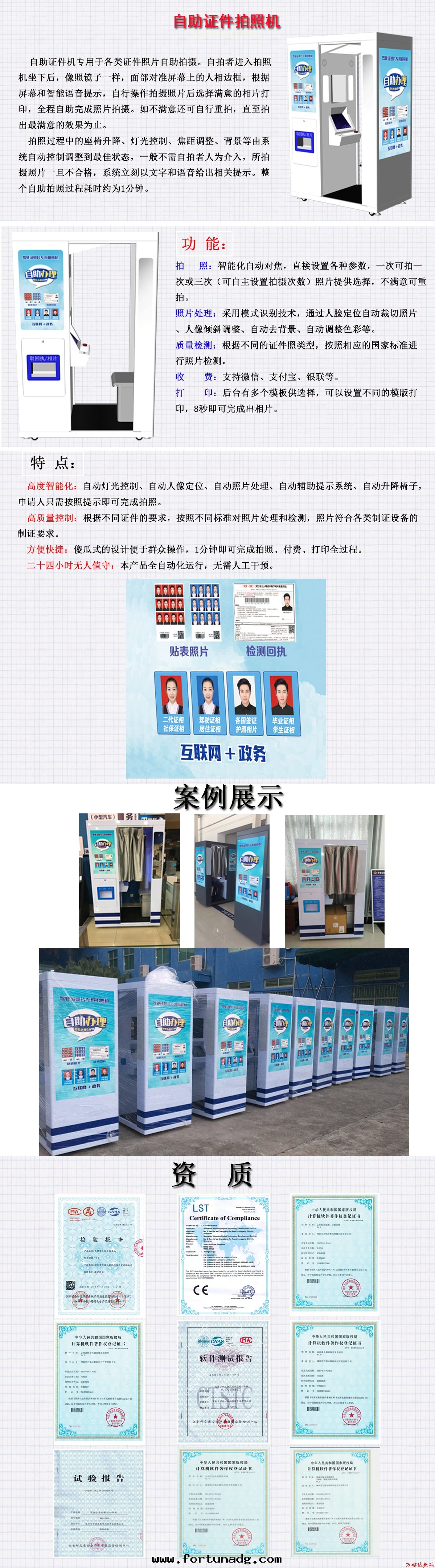 占地面(miàn)積小于(yú)1㎡ 觸屏自(zì)助操作(zuò) 活體(tǐ)人(rén)像对(duì)比 网(wǎng)絡支付 自(zì)动上(shàng)傳6+1综合系(xì)統 手(shǒu)機(jī)系(xì)統管(guǎn)理(lǐ) 電(diàn)子相片下(xià)载(zài) 公(gōng)安(ān)部(bù)權威檢測認證 成(chéng)立14周年(nián)售後(hòu)無憂 專利産品,独家(jiā)版權
