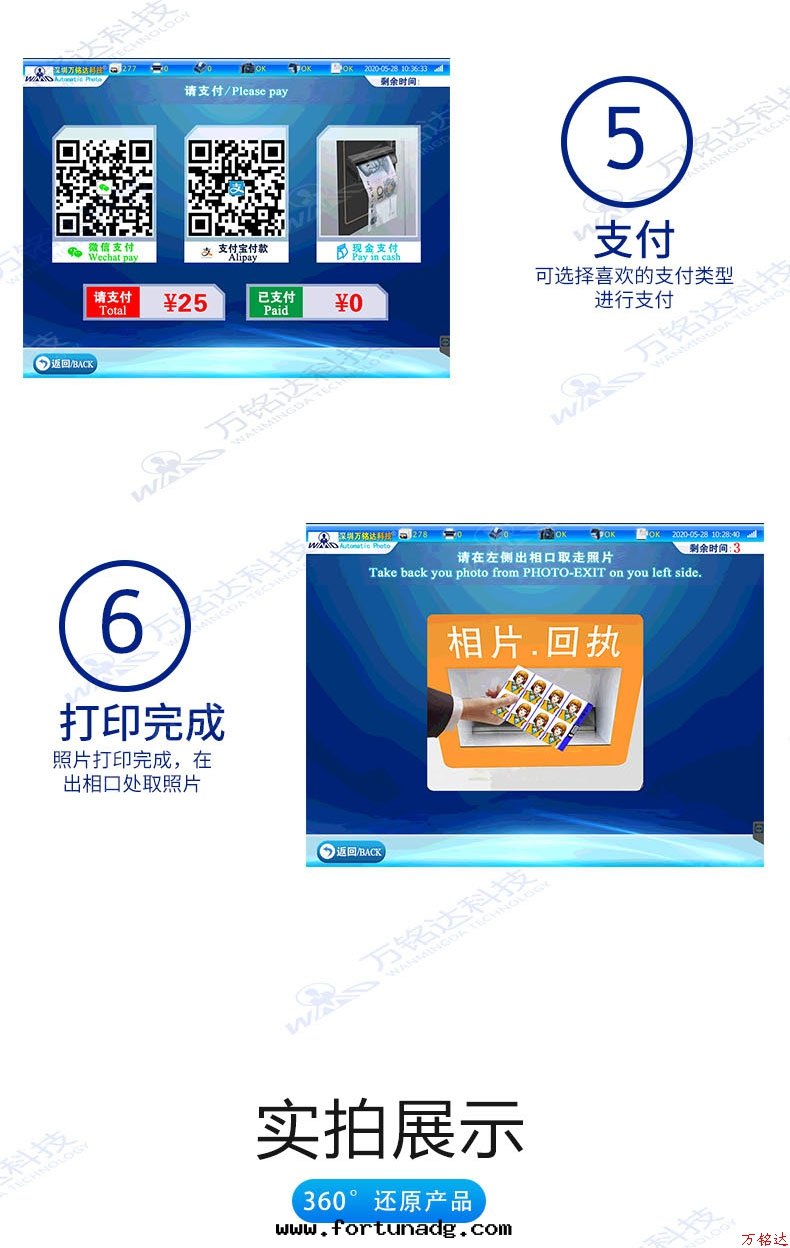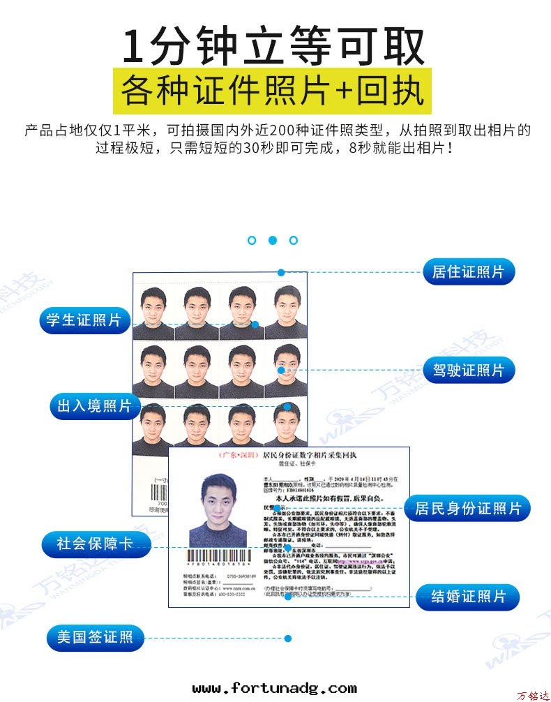 拍照、照片處(chù)理(lǐ)、质量(liàng)檢測、高(gāo)度智能(néng)化(huà)、高(gāo)质量(liàng)控制、方(fāng)便快捷、二(èr)十(shí)四小时(shí)無人(rén)值守、支持(chí)微信(xìn)、支付寶(bǎo)、银(yín)聯等支付、後(hòu)台(tái)有(yǒu)多(duō)个(gè)模版供打(dǎ)印